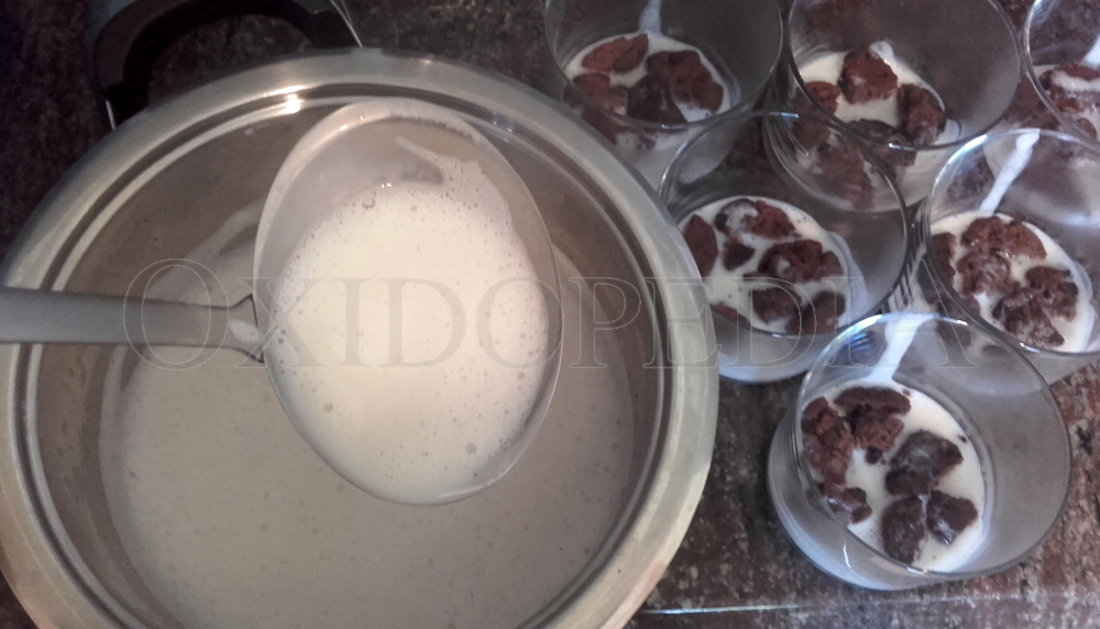Repartimos la mezcla en los vasitos, tapamos y cuando pierdan algo de calor metemos en la nevera. En un par de horas estarán listos para comer.