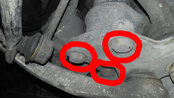 Este BMW en particular tenía los silentblocks de los brazos oscilantes hechos polvo y esto estaba provocando que el coche diese bandazos al dar o quitar gas, traqueteos indeseados, golpeteos sobre la barra de dirección (debido al retroceso de la rueda) y desgaste incorrecto de neumáticos, en definitiva, una penuria 🙁 . A simple vista no se veían mal pero al bloquear las ruedas delanteras y forzar el coche hacia adelante o hacia atrás se veía perfectamente como la rueda oscilaba mucho y desde abajo se veía que el silentblock añejo se arrugaba por dentro permitiendo una oscilación exagerada.
