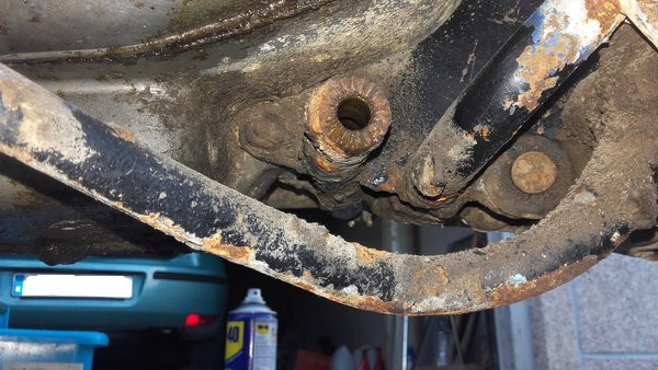 Antes de meterlo al taller he aprovechado para dar un lavado rápido con la Kärcher a los cárteres. Por delante tenían una capa de tierra mezclada con aceite que con el paso de los años se había convertido en un chapapote MALÍSIMO de sacar de las rendijas (estaban completamente rellenas).
